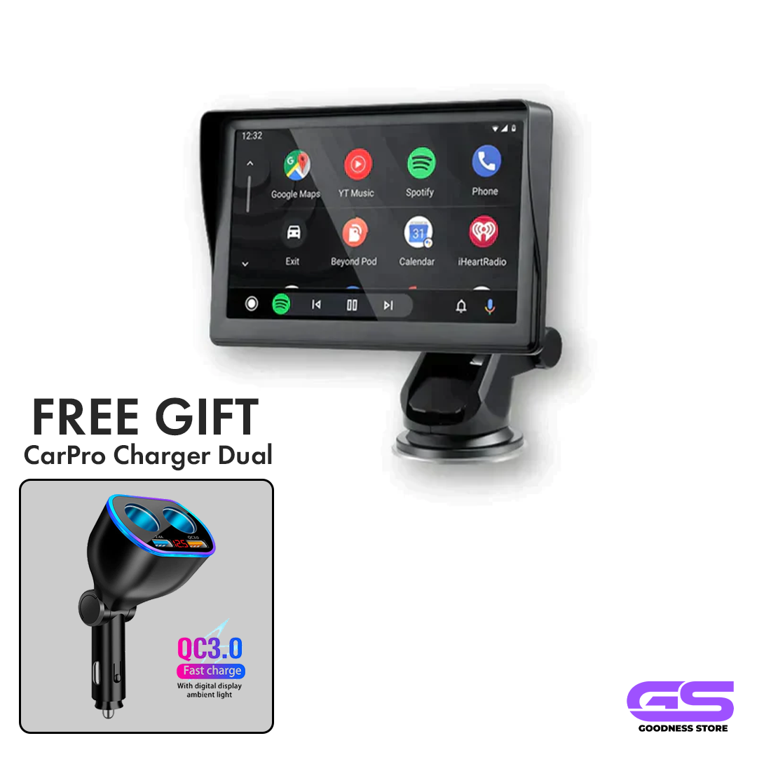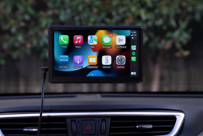 Mount it on the dash, connect to your phone via CarPlay/Android Auto, and choose your audio output. No wiring required - use FM,AUX, or Bluetooth.